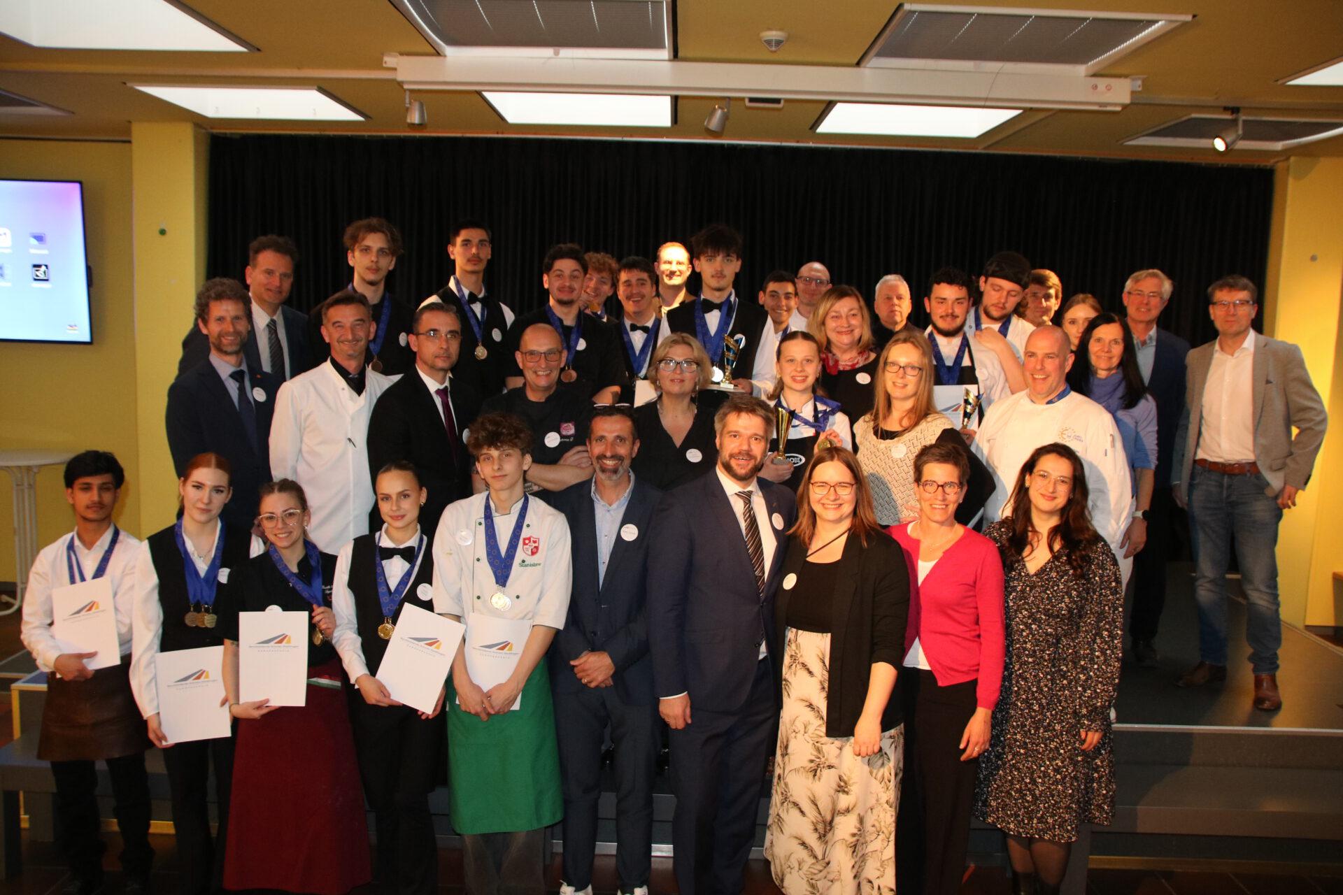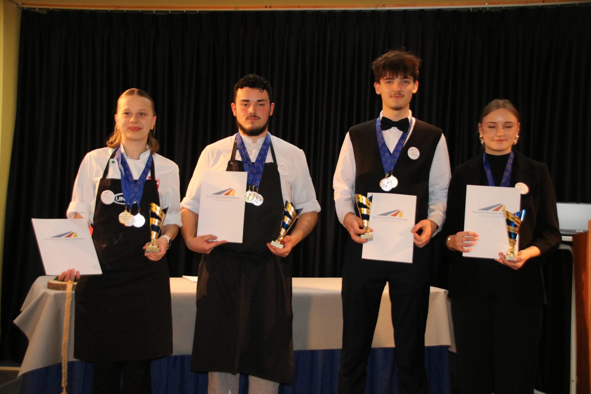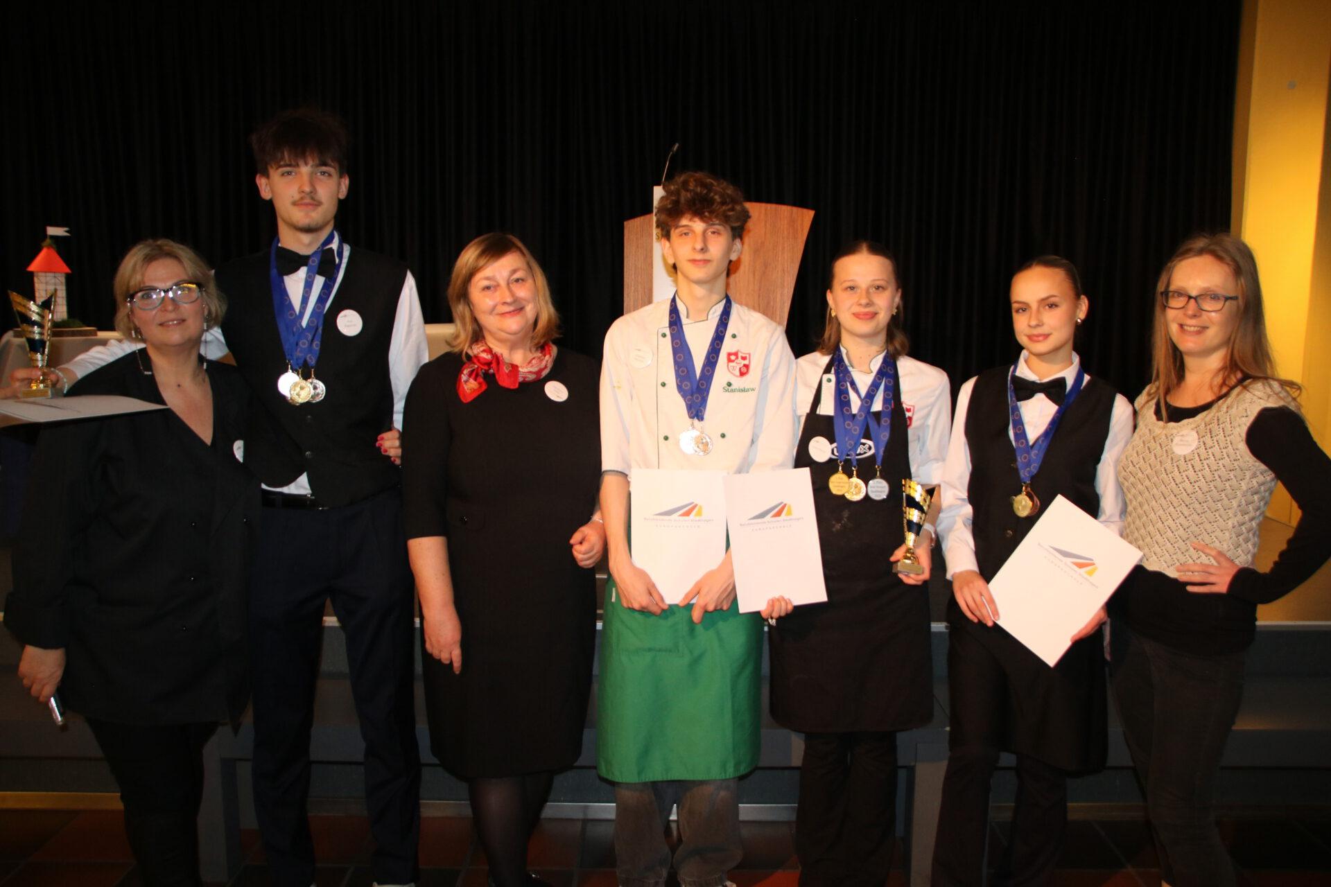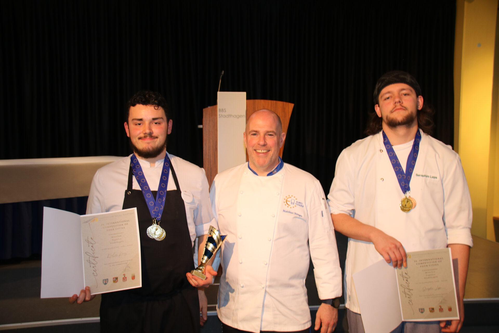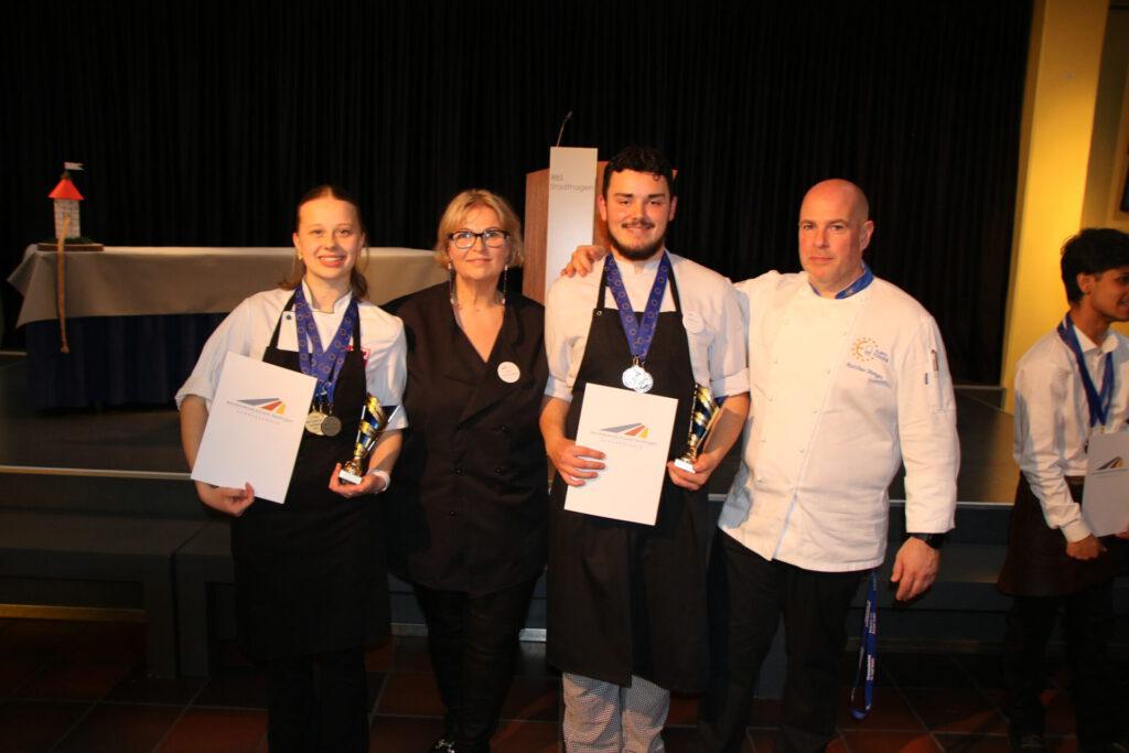Die Bewertung übernahmen Praxislehrkräfte aus allen vier teilnehmenden Nationen. Darüber hinaus konnten zwei Ehrenprüfer für Service und Küche gewonnen werden. Dies waren Eike Rendigs und Steven Woost aus der Paschenburg. Am Ende erhielten die teilnehmenden Schülerinnen und Schüler Medaillen in Bronze, Silber und Gold für die verschiedenen Kategorien. Den Pokal für den Gesamtsieg gewann ein Team mit Auszubildenden aus Polen und Deutschland.