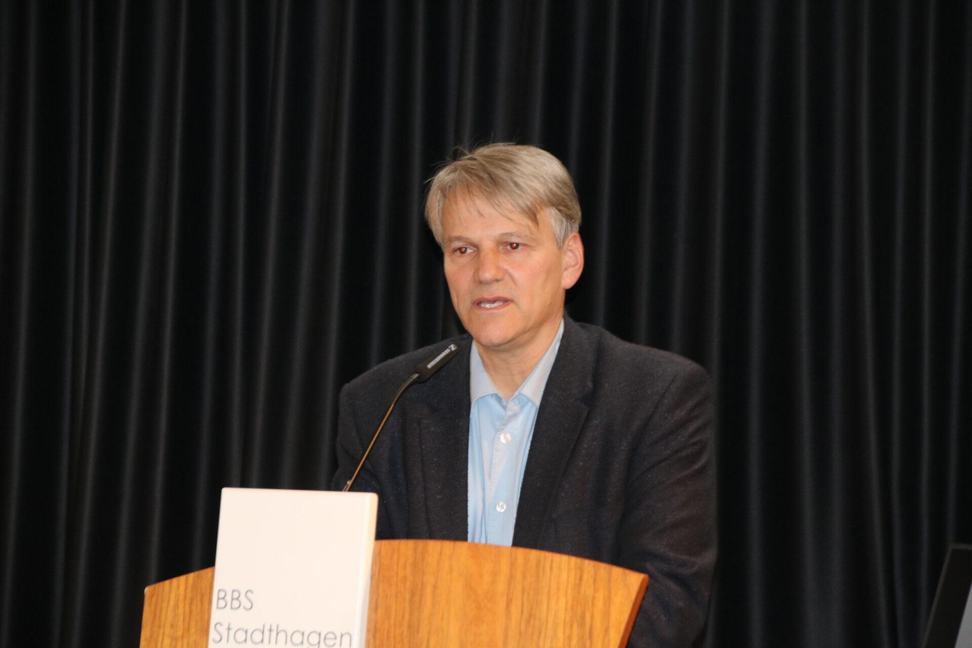 Die Gäste reisten bereits zu Wochenbeginn an. Für die Schülerinnen und Schüler der BBS Stadthagen wurde dies sichtbar, als im Forum Tische und Stühle aufgebaut wurden. Die Teilnehmerinnen und Teilnehmer des Wettbewerbs konnten sich so endlich außerhalb des digitalen Raums bei einem gemeinsamen Abendessen in der Schule auszutauschen. Am Dienstag hatten sie dann die Möglichkeit die Räumlichkeiten und Utensilien für den Wettbewerb kennenzulernen und sich im Team abzusprechen. Am Mittwoch begann der Höhepunkt des Wettbewerbs mit einem Cocktailempfang für die geladenen Gäste. Anschließend nahmen die Anwesenden ihre Plätze ein und wurden vom kommissarischen Schulleiter Sven Janßen sowie von Matthias Bock, Abteilungsleiter für Fachoberschulen und Ernährung, begrüßt.