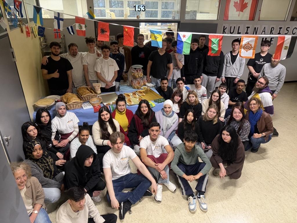 Unter dem Motto „Wir sind bunt, wir sind vielfältig“ and in diesem Jahr bereits zum dritten Mal die Kulinarische Woche der Sprach- und Integrationsklassen statt. Das Projekt spiegelte eindrucksvoll die kulturelle Vielfalt unserer Schulgemeinschaft wider: Insgesamt waren 15 Nationen und 17 Erstsprachen vertreten. Neben dieser sprachlichen und kulturellen Vielfalt brachten die Schülerinnen und Schüler vor allem eines mit – viele köstliche Speiseideen aus ihren Herkunftsländern.