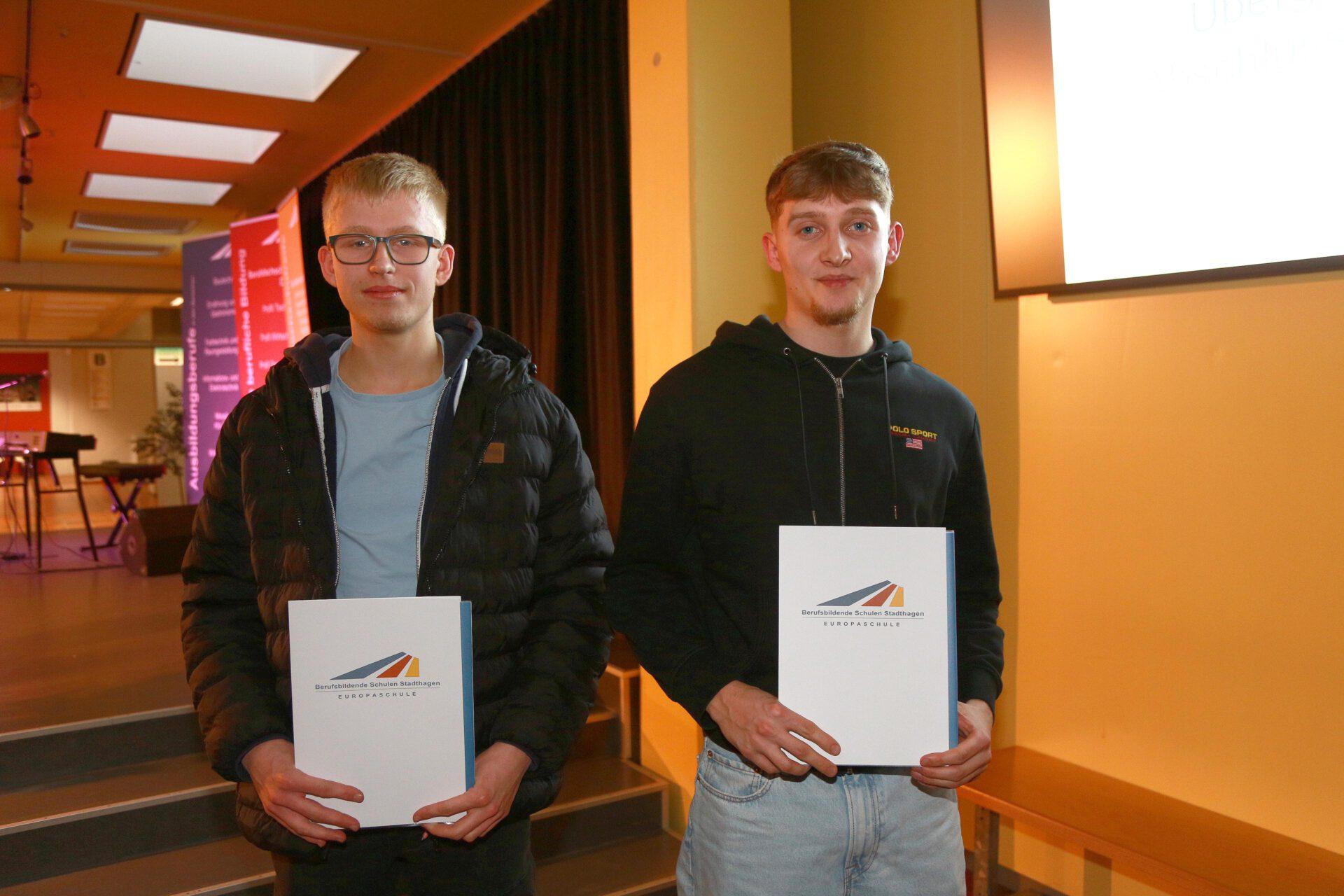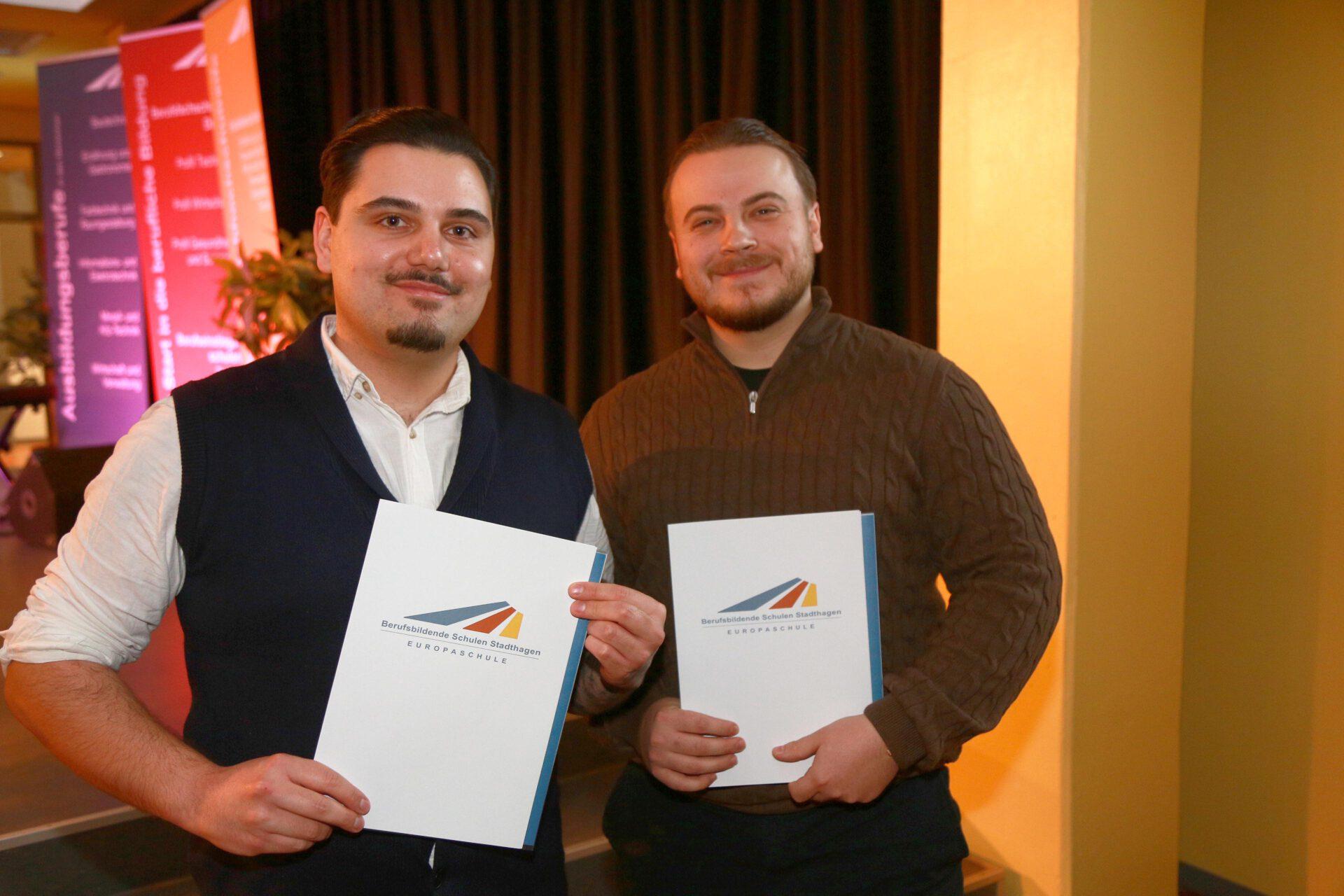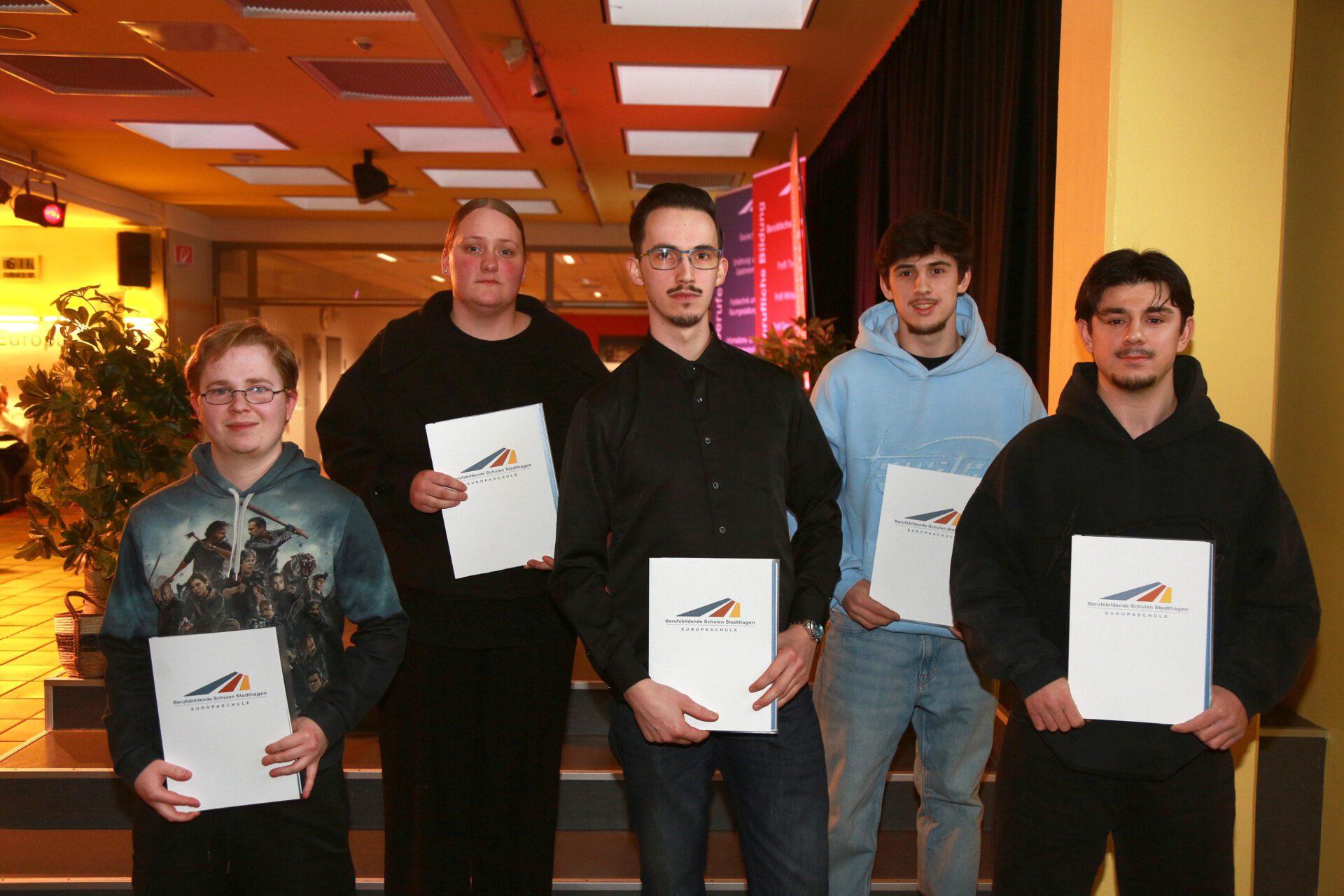 Im Rahmen einer Feierstunde im Forum der Berufsbildenden Schulen Stadthagen erhielten nach zweieinhalb bzw. dreieinhalb Jahren ehemalige Auszubildende ihre Schul- und Prüfungszeugnisse aus der Hand von Martin Wrede, Geschäftsstellenleiter der IHK Hannover in Stadthagen.