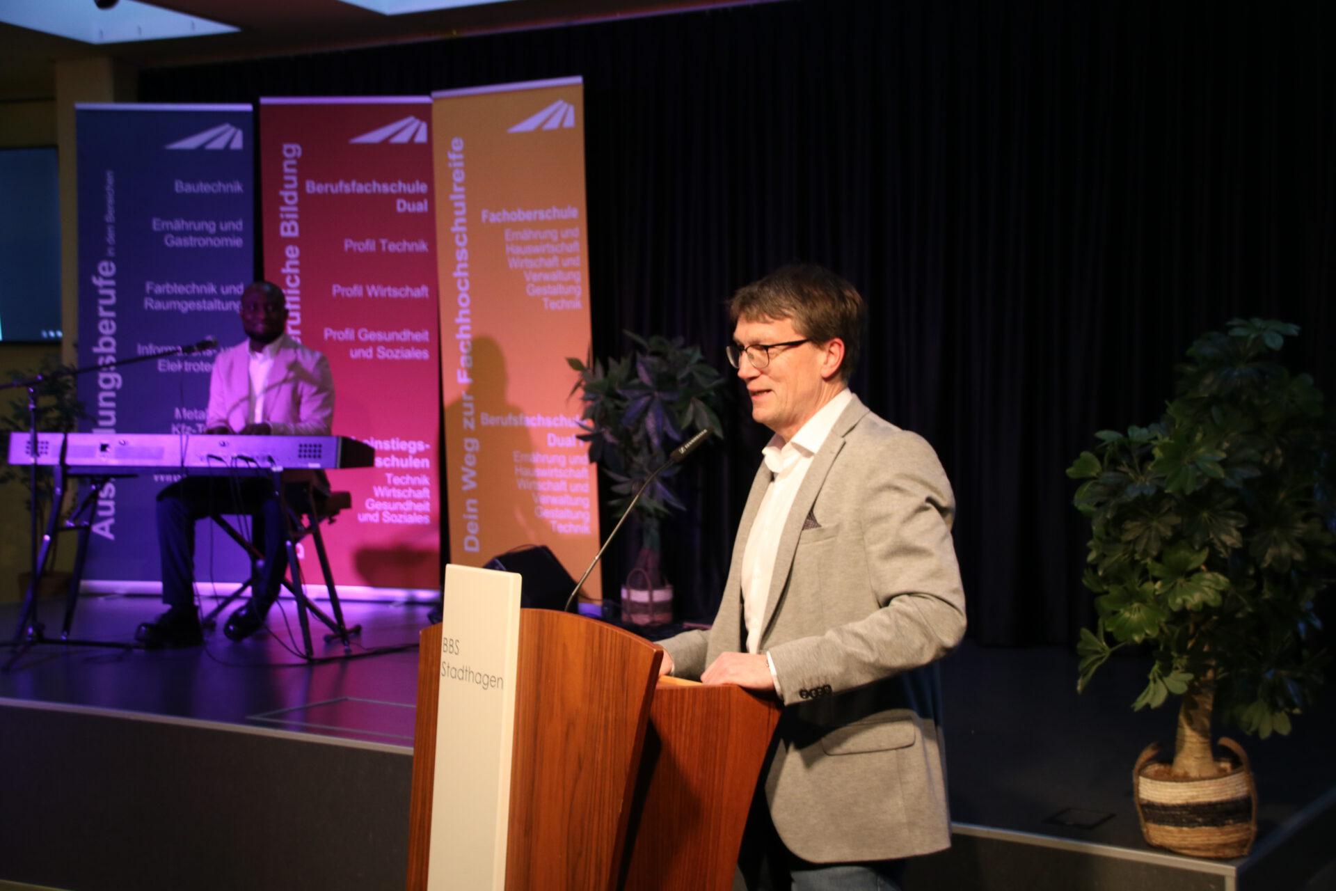 Begrüßt wurden die Absolventen und ihre Angehörigen zu Beginn durch Matthias Bock, Abteilungsleiter an den BBS Stadthagen. Anschließend richtete Sven Janßen, kommissarischer Schulleiter der BBS Stadthagen einige Worte an die künftigen Absolventen.
