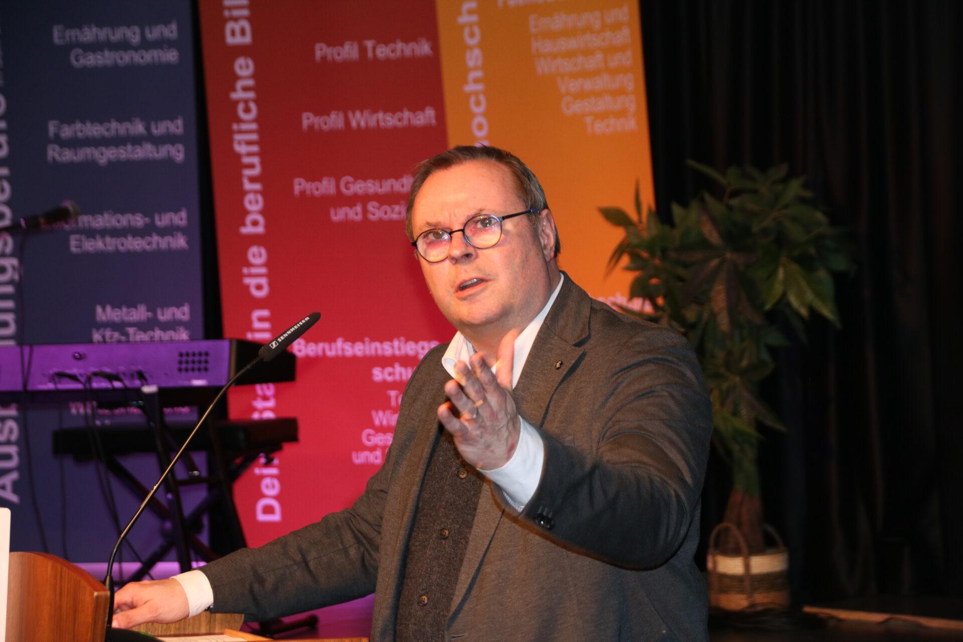 Ähnliche Worte richtete auch Martin Wrede an die angehenden Nachwuchskräfte und fragte nach ihren Zielen. „Machen Sie sich unentbehrlich, gestalten Sie die Entwicklung mit und glauben Sie in Ihre Zukunft“, so Wrede. Seiner Ansicht nach liegt die Stärke der Dualen Ausbildung in der Entwicklung einer breiten Handlungskompetenz: Projekte, Fachgespräch und die anschließende Präsentation der betrieblichen Aufgabe, bereiten auf den Einsatz im Betrieb vor. Dies, so Wrede, ist eine Stärke und Innovationskraft der deutschen Wirtschaft.