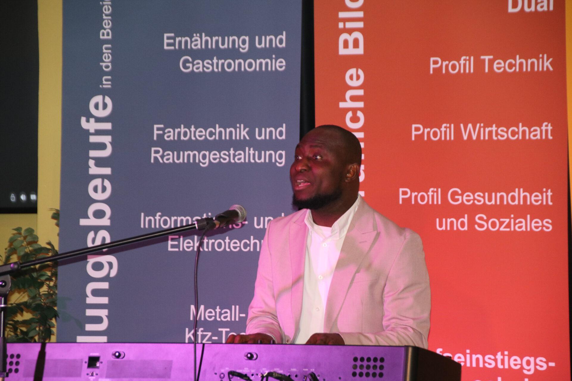 Musikalisch umrahmt wurde die Feierstunde durch den stimmgewaltigen, sich selbst am Klavier begleitenden Edwin Appelton. Bei einem Glas Sekt, organisiert durch die gastronomische Abteilung der Schule, ließen die Absolventinnen und Absolventen in geselliger Runde ihren letzten Schultag ausklingen.