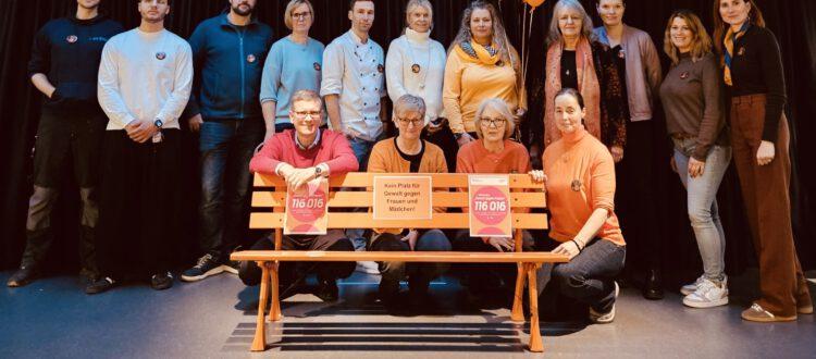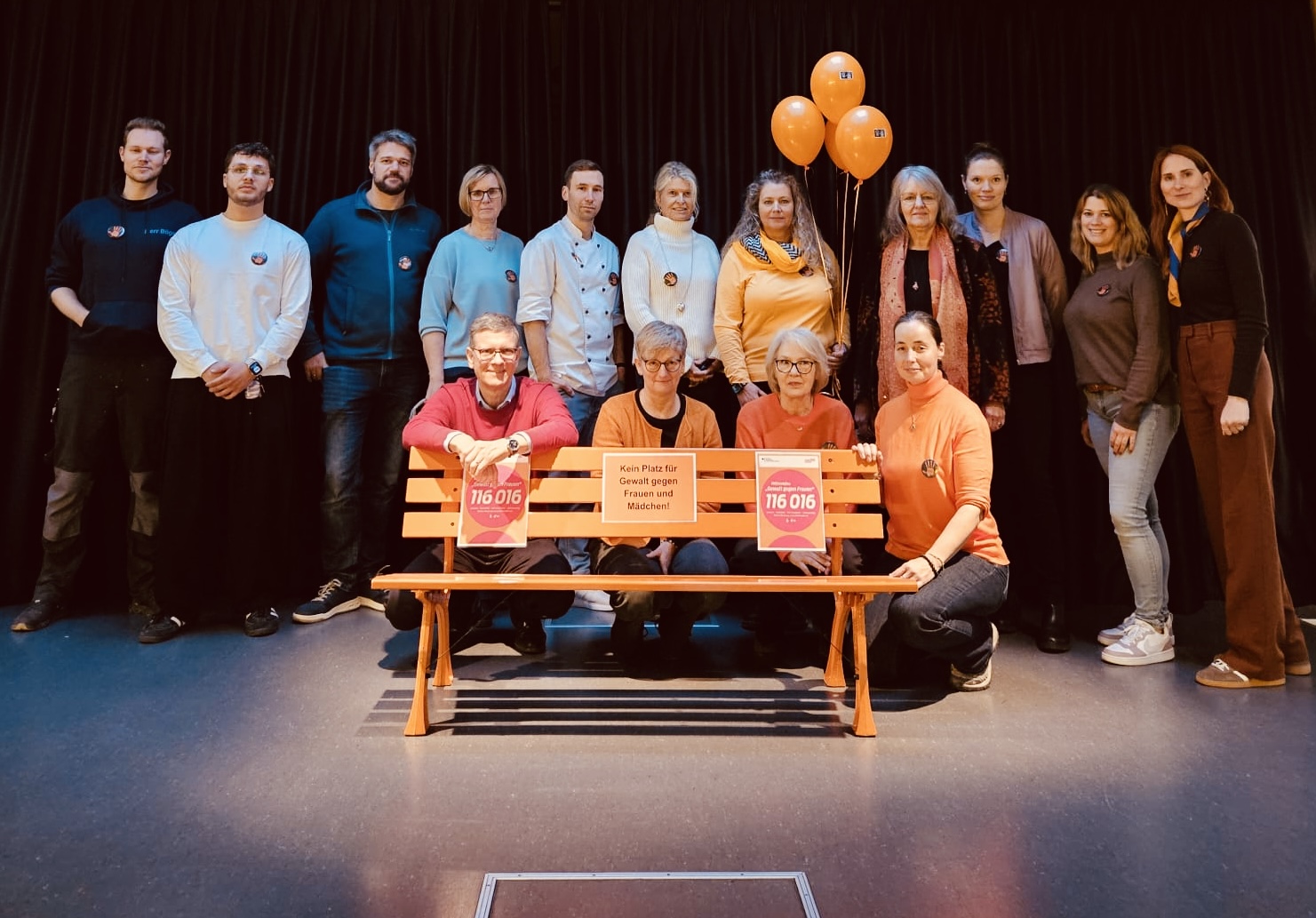 Schülerinnen und Schüler gestalteten anlässlich der Kampagne eine orangefarbene Bank und platzierten diese für zehn Tage auf der Bühne im Forum der BBS Stadthagen. Kolleginnen und Kollegen, Mitarbeitende der Verwaltung, der Schulsozialarbeit, der Schulleitung und der Region des Lernens trafen sich an der orangefarbenen Bank, um die Haltung der Schulgemeinschaft zu repräsentieren.